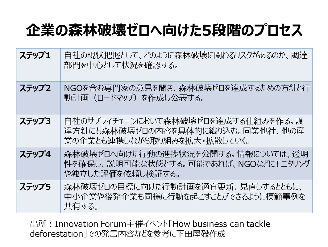 企業の森林破壊ゼロへ向けた5段階のプロセス
