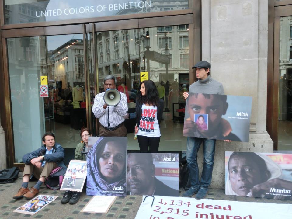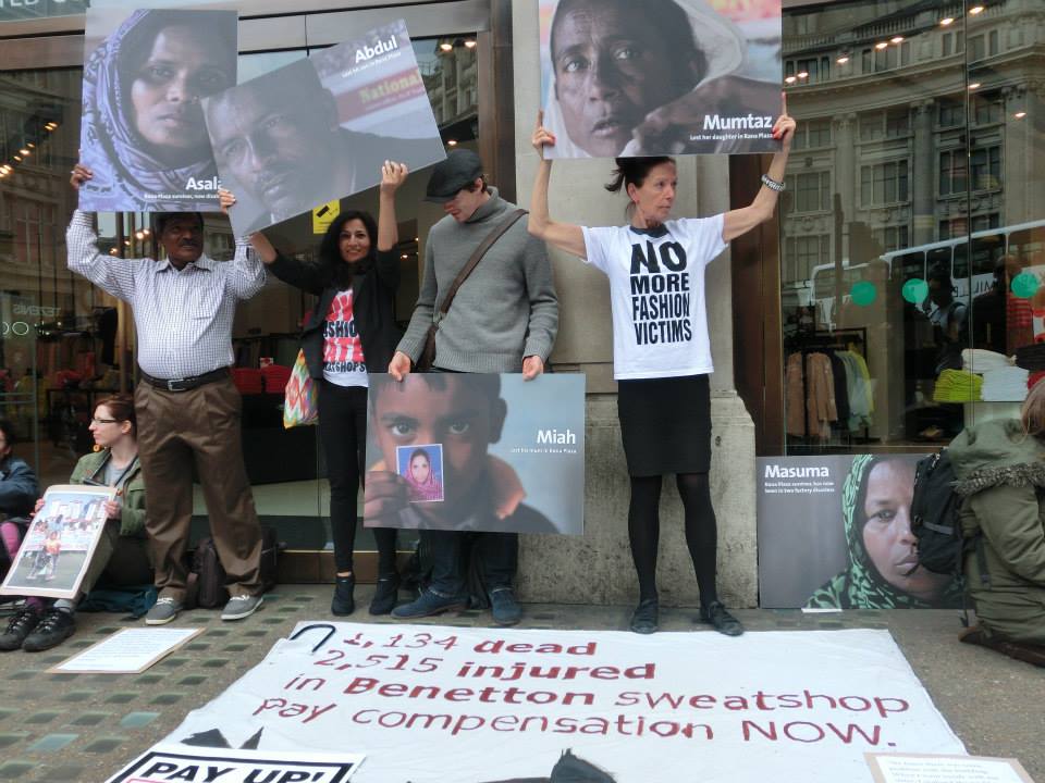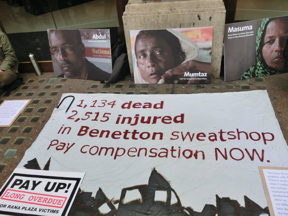 ベネトンもラナプラザから調達していた企業の一つとされ、2013年5月に「アコード」に署名しました。その後「アコード」の求める、被害者とその家族への補償金の支払いをしておらず、契約違反とされ店舗前で訴えられたものです。